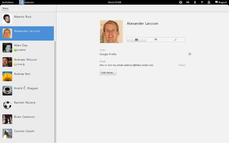 - GNOME Contacts 现在用于显示联系人的详细信息