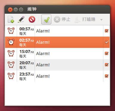 好在我还同时使用 Ubuntu ,使用 Ubuntu 就简单了,打开 Ubuntu 软件中心,在搜索框中输入 "alarm clock" 好了, 你会看到下面的软件列表: