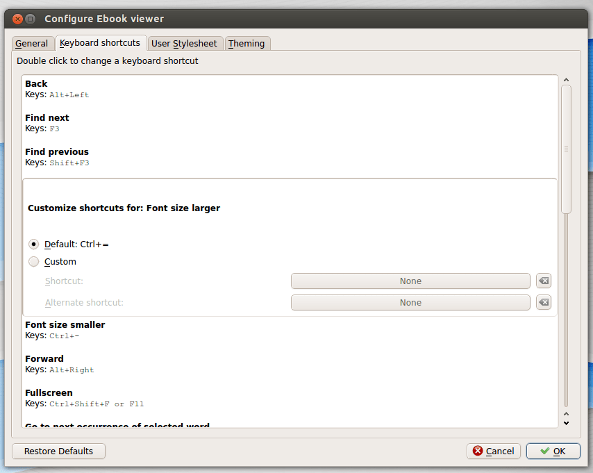 Calibre默认携带了好用的电子书阅读器,在1.6版本增加了额外的快捷键配置,意味着现在用户能通过自己的喜好制定不同的快捷键例如放大缩小。
