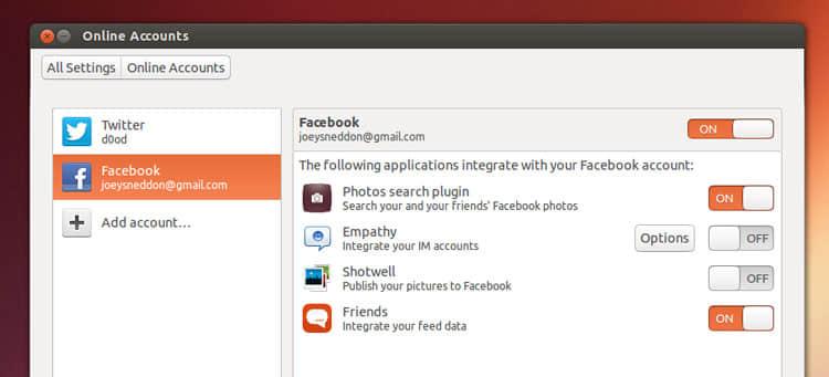例如,添加 GMail, 您可以在启动器和消息菜单上获得喜爱的Gmail选项; 启用Rd.io,您可以使用“声音”(Sound) 菜单控制回放。