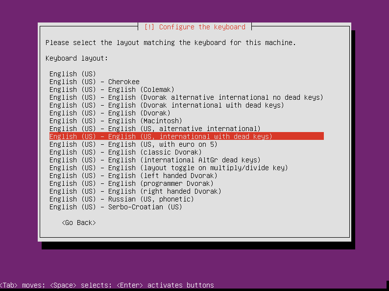 选择键盘布局(译注:如下图的英文即可):