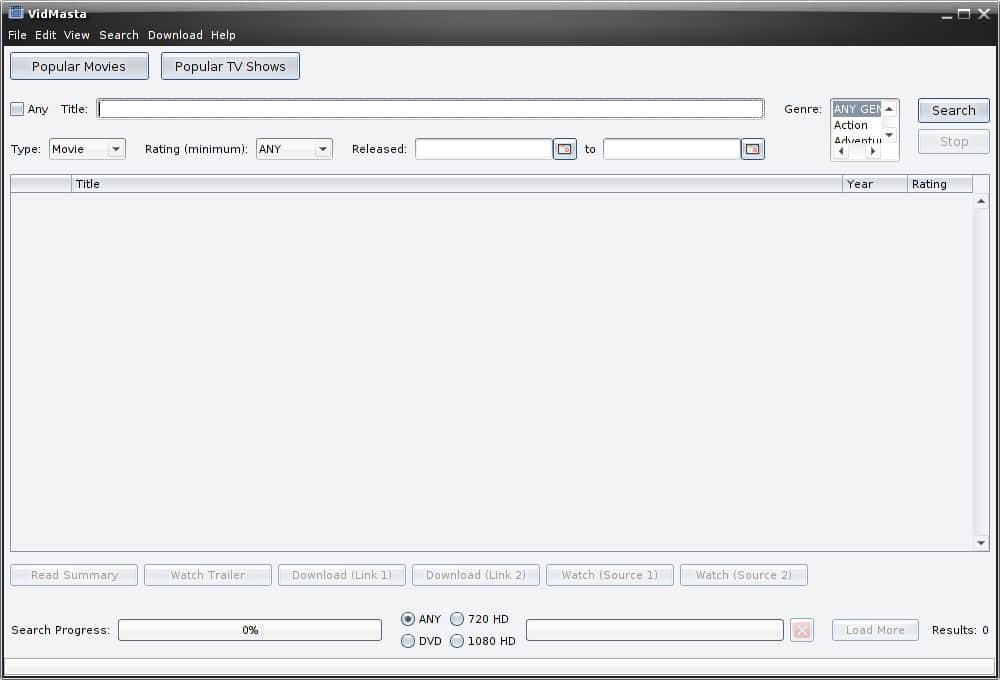 搜索电影电视剧非常容易。在标题框里键入电影的名字,选择电影种类和电影格式,例如“任何”,“DVD”,“720HD”,“1080HD”等。然后敲击Enter键开始搜素。你还可以通过评价来过滤搜素结果。假如你不知道电影的名字,你可以在菜单栏里勾选“任何”。