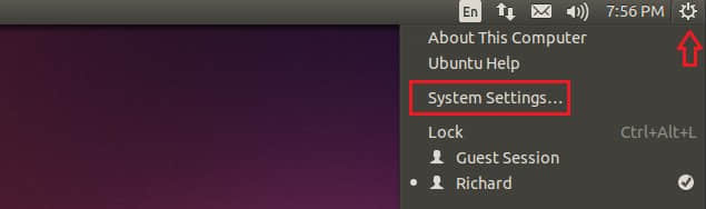 好了,现在咱们开始吧,点击顶部右端面板中的齿轮按钮选择System Settings(系统设置)...