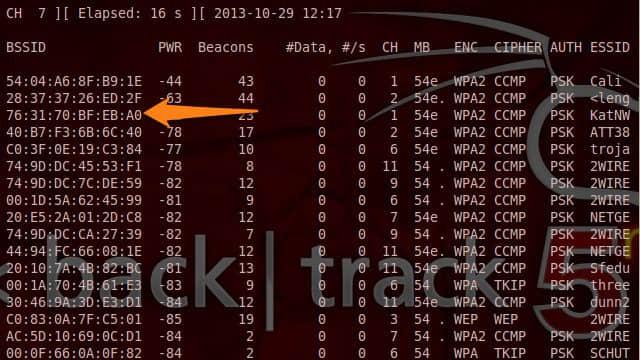 例如,如果你和我一样,监控接口都叫做mon0,并且你要破解的路由器BSSID是8D:AE:9D:65:1F:B2,那么命令应该是下面这个样子: