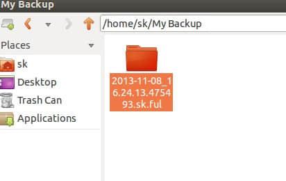 在这里你可以选择备份存放的路径,正如我之前提到的,你可以把备份的文档或文件夹存放在硬盘或者远程的 FTP 或 NAS。这里我将把备份保存在 /home/sk/My Backup 目录下。