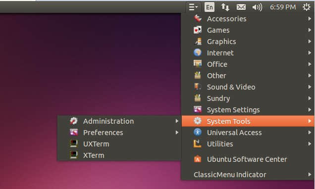 如果你是一个老资格用户,想要在Ubuntu的Unity回到GNOME风格的菜单,安装Classic Menu Indicator 可以解决这个问题。这个有趣的包被安装在顶部面板的通知区域,在Ubuntu中带回了GNOME风格菜单体验。