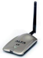 - 一个兼容的无线适配器.这是最主要的需求。你需要一个无线适配器,能用来完成包注入,你的电脑很可能不具备这个功能。在和我的安全专家邻居讨论了以后,我从亚马逊上花了50美元购买了一个Alfa AWUS050NH适配器,图片如上。更新:别学我,其实应该买Alfa AWUS036H而不是US050NH。视频里的哥们儿用$12美金在Ebay上买了一个解调器(同时可以选择把自己的路由器卖掉)。网上有很多可以兼容aircrack的适配器。