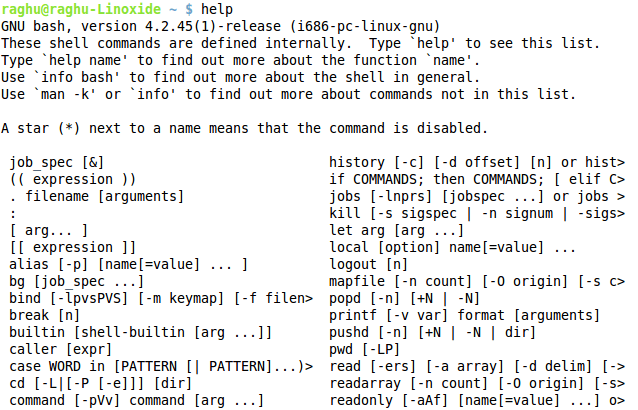 我们可以使用 help 命令来查看所有的内部命令(help 命令本身也是一个内部命令):