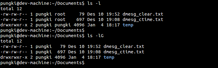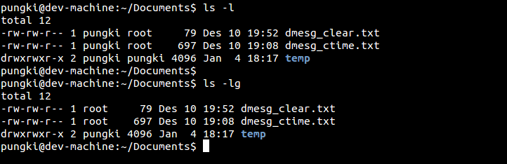 $ ls -g