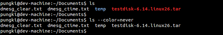 $ ls --color=never