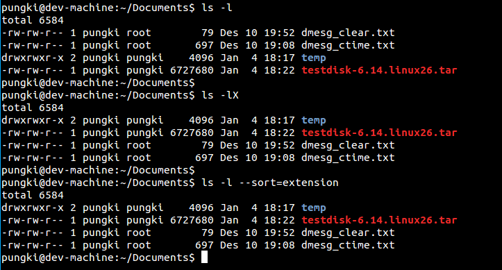 $ ls --sort=extension