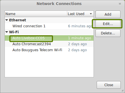 在 Network Connections 中,你可以看到所有你最近链接过的 WiFi 网络。选择你想要知道密码的一个,点击Edit。