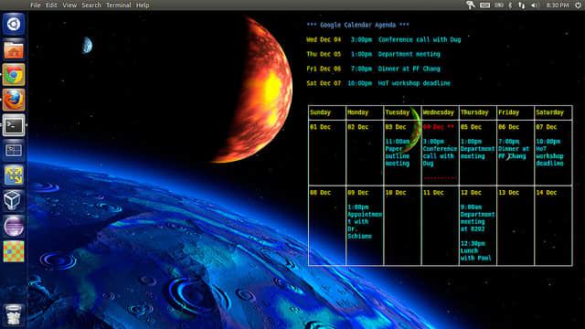 如何在Linux桌面墙纸上显示Google Calendar