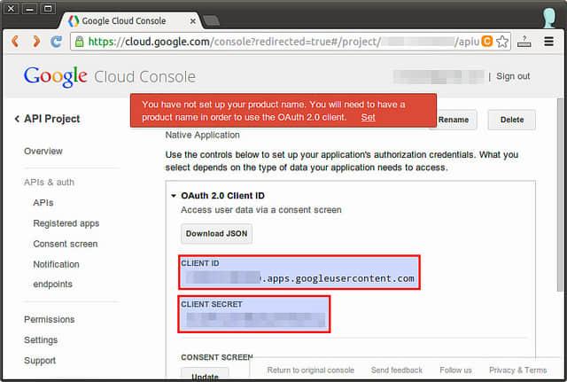 --clientid='XXXXXXXXXX.apps.googleusercontent.com' --clientsecret='YYYYYYYYYYYYYYYY'