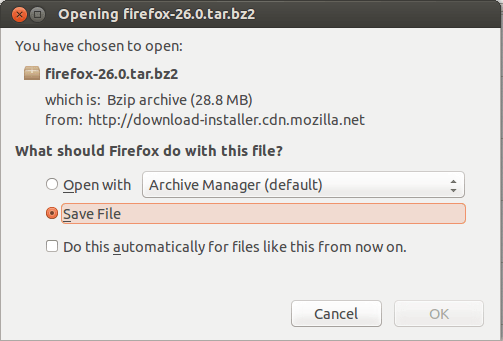 由于大多数 Firefox 下载文件以.tar和.bz2格式保存,必须从这些压缩包中提取文件。有很多方法可以在 Ubuntu 中解压缩文件。