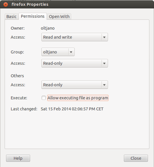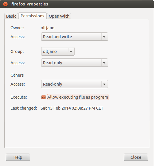 选择 Permissions 并勾选 Allow executing file as a program 。