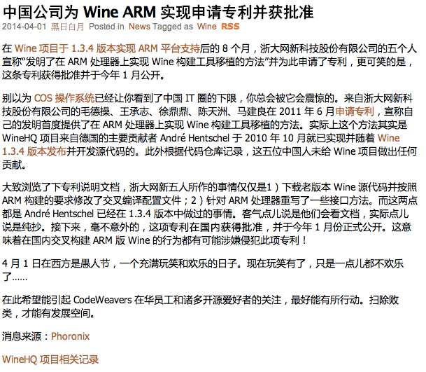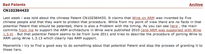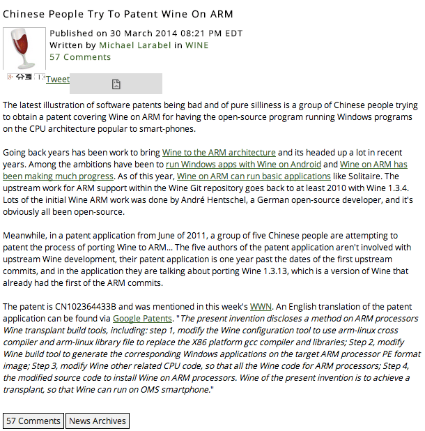 Phoronix : Chinese People Try To Patent Wine On ARM