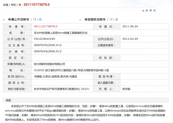 网曝开发龙井兼容内核的浙大网新“发明”了Wine ARM,并获得专利批准 ... ...
