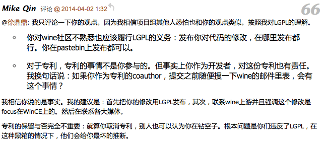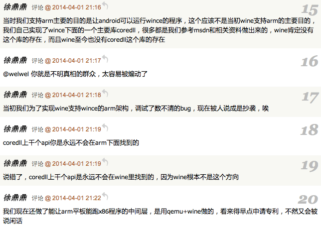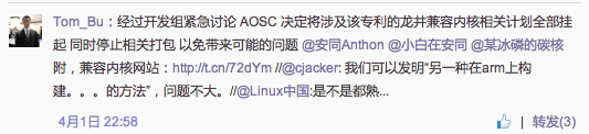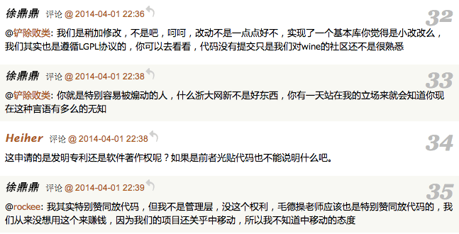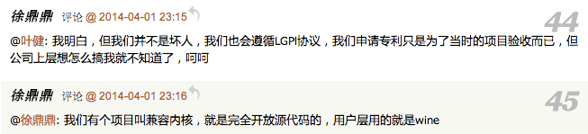 此外,在LinuxToy上也有比较激烈的讨论,而且也有自称为其中一个发明人“徐鼎鼎”的人出来解释一些情况:
