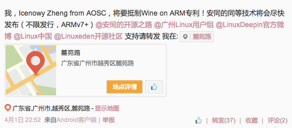 随后,LinuxToy编发了文章“中国公司为 Wine ARM 实现申请专利并获批准”: