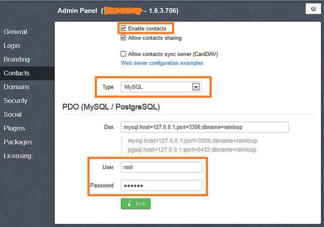 联系人功能需要数据库支持。我们将使用 MySQL 数据库启用联系人。RainLoop 可以手动创建所需的数据库,如下。