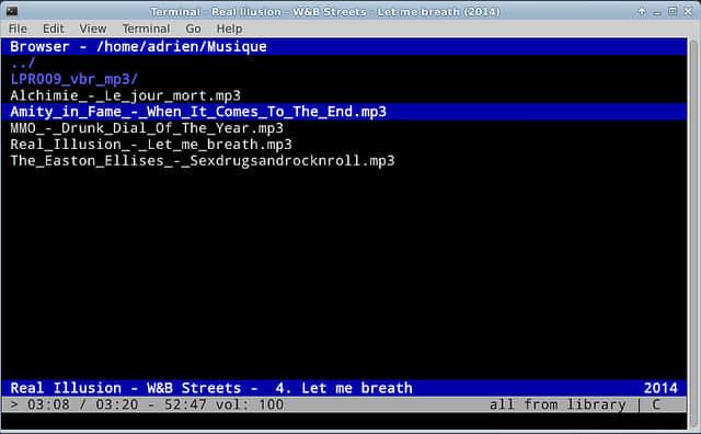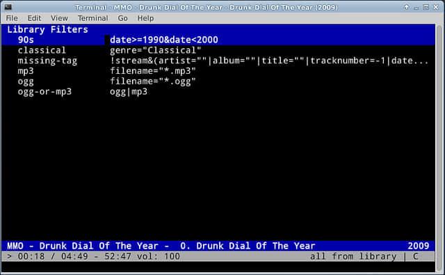 cmus是一个内置了音频播放器的强大的音乐文件管理器。用它的基于ncurses的命令行界面,你可以浏览你的音乐库,并从播放列表或队列中播放音乐,这一切都是在命令行下。