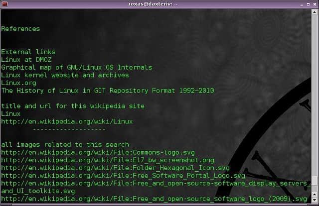 最后来小结一下吧,这里列出了我认为人们使用最多5大搜索引擎,这些搜索引擎都可以通过命令行来访问。这里Google图像和Google地图可能缺席了,但我想这些可能不能很好适应控制台环境吧。我也想要寻找一个音乐搜索引擎,但是没有找到对于本列表“有价值的”。就像你可能已经注意到的那样,列表中的工具在功能和选项上是良莠不齐的:其中一些很简单,而另外一些则功能很复杂。但不管怎么说,最后它们都还是完成了它们的任务。