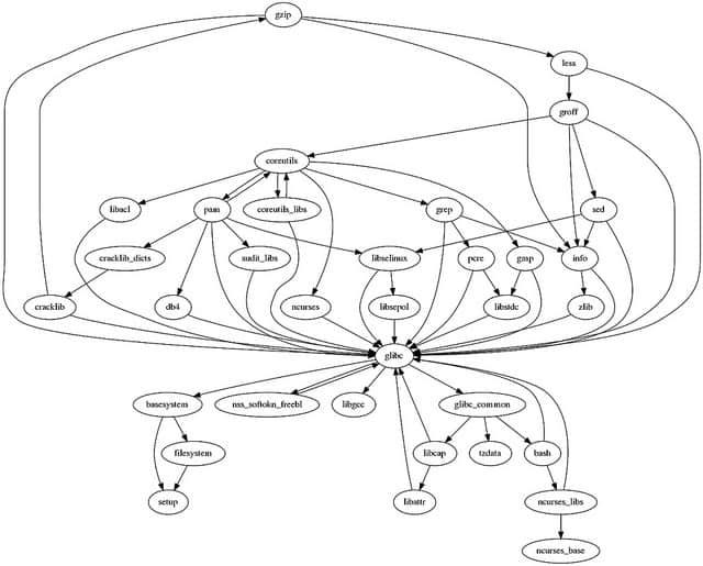 $ rpmdep.pl -dot gzip.dot gzip $ dot -Tpng -o output.png gzip.dot