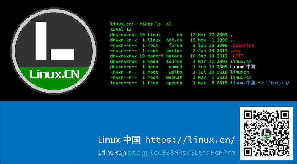『Linux 中国』,由 wxy 和 DeadFire 创立于 2003 年。致力于 Linux 的推广教育、Linux 技术研究、自由和开源软件理念的传播。在知识传播、组织开源志愿者活动等方面,携手众多开源爱好者共同取得了一定成就。