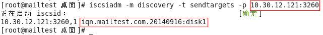 #iscsiadm -m discovery -t sendtargets -p 10.30.12.121:3260(效果看下图)