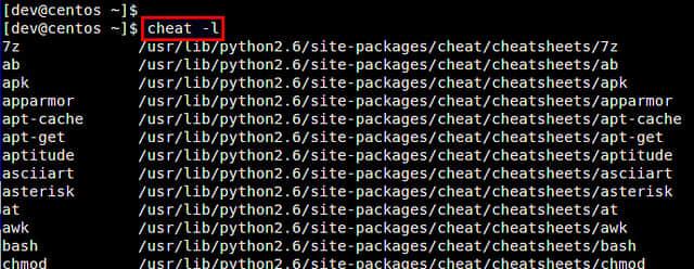 cheat命令一个很酷的事是,它自带有超过90个的常用Linux命令的内建小抄。查看可用的小抄列表: