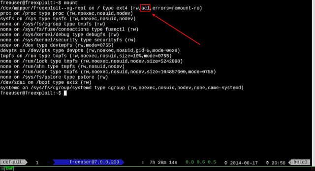 现在我们需要重新挂载分区(我喜欢完全重启,因为我不想丢失数据),如果你对其它分区开启ACL,你必须也重新挂载它。