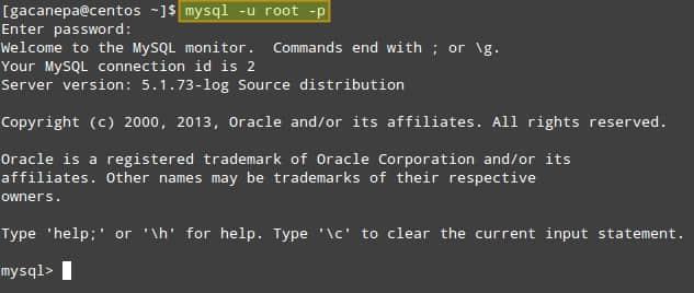 你将需要输入MySQL服务器的密码,如果认证成功,MySQL提示将会出现。