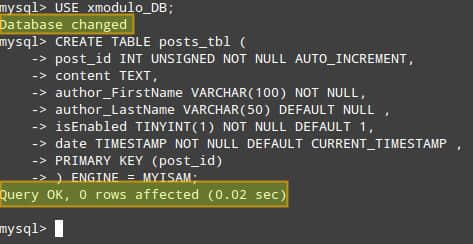 现在,让我们创建一个叫做xmodulo_DB的数据库: