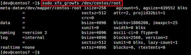 $ sudo xfs_growfs /dev/centos/root -D 1986208
