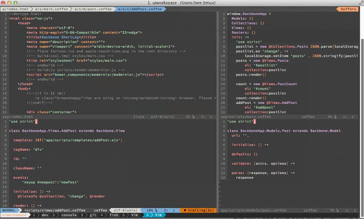 - Seamlessly Navigate Vim & Tmux Splits 这个插件需要每一个想使用它的人都要懂得使用tmux,这个跟vim的splits 一样简单好用。