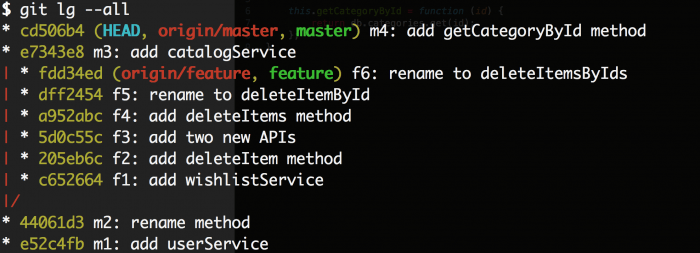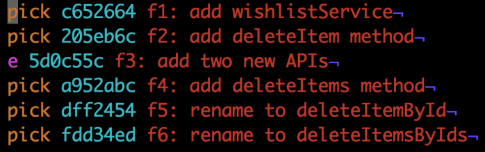 好吧,让我们来仔细看看f3提交究竟修改了什么。原来我们共修改了两个文件:userService.js和wishlistService.js。比方说,userService.js的更改可以直接合入主分支而wishlistService.js不能。因为wishlistService.js甚至不存在在主分支里面。它是f1提交中引入的。