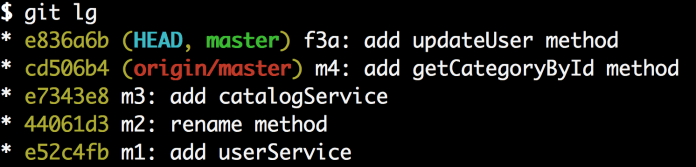 让我们创建两个新的提交:首先让我们为可以提交到主分支的userService.js创建一个提交。运行git add userService.js 接着运行 git commit -m "f3a: add updateUser method"。