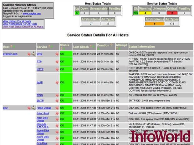 Nagios是一个经典的老牌系统和网络监测工具。运行速度快,可靠,需要针对应用定制。Nagios对于初学者是一个挑战。但是它的极其复杂的配置正好也反应出它的强大,因为它几乎可以适用于任何监控任务。要说缺点的话就是不怎么耐看,但是其强劲的功能和可靠性弥补了这个缺点。