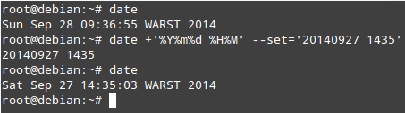 # date +’%Y%m%d %H%m’ --set='20140928 1518'