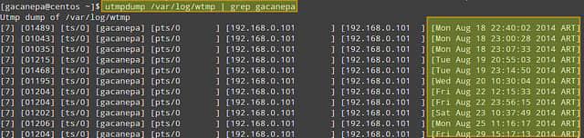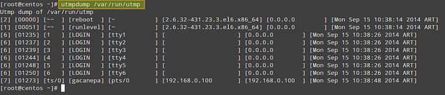 via: http://xmodulo.com/2014/09/monitor-user-login-history-centos-utmpdump.html