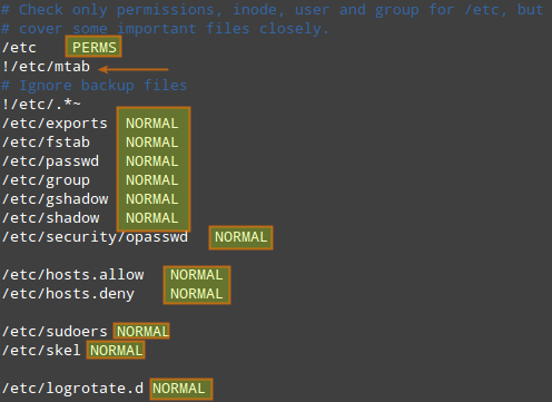 最后,让我们修改文件内容(如,添加一个注释行到/etc/aide.conf)。