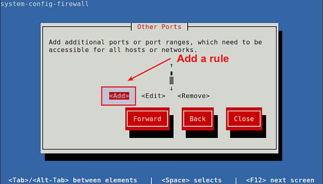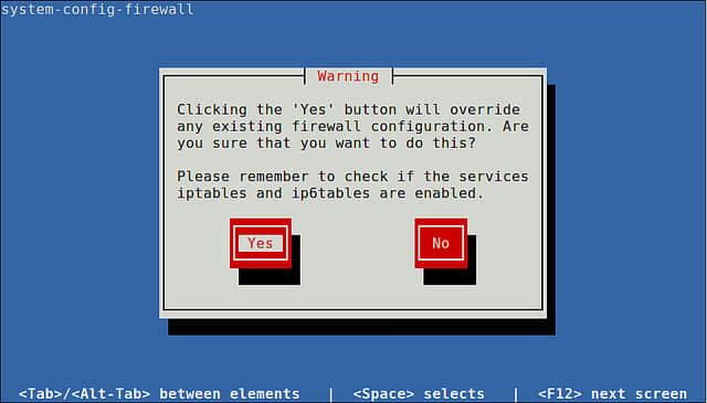 另一种方法是通过一个名为system-config-firewall-tui的命令行用户接口(TUI)的防火墙客户端。