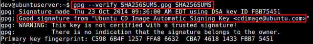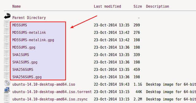 $ wget http://releases.ubuntu.com/14.10/SHA256SUMS $ wget http://releases.ubuntu.com/14.10/SHA256SUMS.gpg