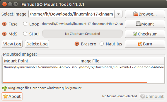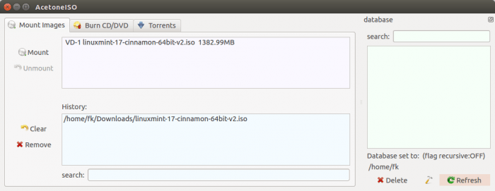 当你打开这个程序,你就会看到一个图形化的文件管理器用来挂载镜像文件,包括专有的镜像格式,也包括像ISO, BIN, NRG, MDF, IMG 等等,并且允许您执行一系列的操作。