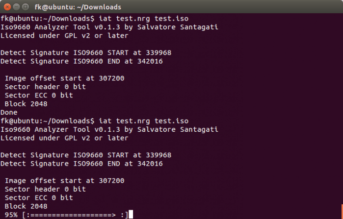 iat(Iso 9660分析工具)是一个通用的开源工具,能够检测很多不同镜像格式文件的结构,包括BIN,MDF,PDI,CDI,NRG和B5I,并转化成ISO 9660格式.