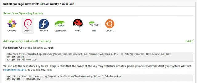 ownCloud提供了社区版(免费)和企业版(面向企业的有偿支持)。预编译的ownCloud社区版可以提供了CentOS、Debian、Fedora、openSUSE、,SLE和Ubuntu版本。本教程将演示如何在Debian Wheezy上安装和在配置ownCloud社区版。