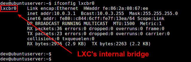 当你创建了 LXC 容器后,它的网口会自动链接到这个桥接网卡上,然后这个容器就能和外部世界通信了。