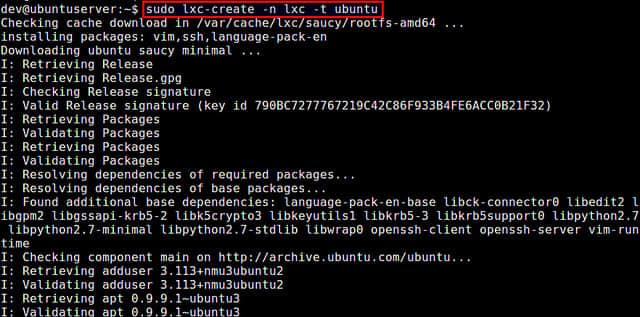 $ sudo lxc-create -n test-lxc -t ubuntu