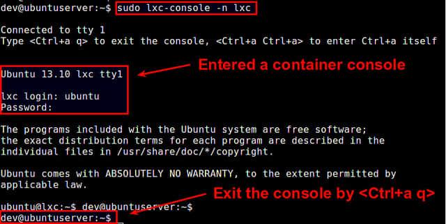 $ sudo lxc-console -n <container-name>